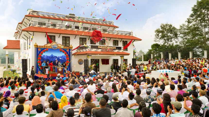 The grand opening of the new Narconon Nepal was celebrated by more than 1,000 guests and dignitaries, including the Right Honorable Parmanand Jha, Vice President of Nepal, on September 20, 2013. The four-story, 100-bed residential drug rehabilitation facility is located in the foothills of the Himalayas atop Hubbard’s Peak, the summit dedicated in 2010 in honor of humanitarian L. Ron Hubbard for his development of the drug rehabilitation technology used by the Narconon program.